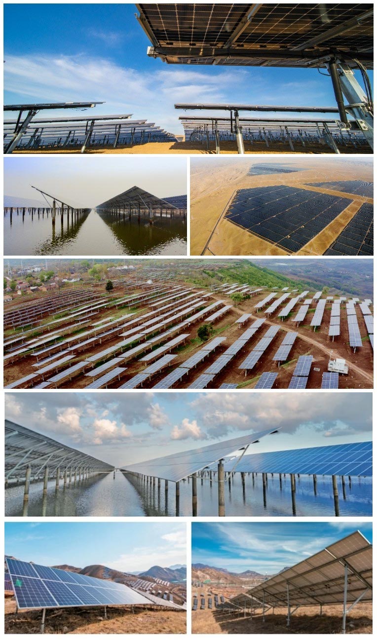 گوکیانگ سینگسان بر نوآوری در سیستمهای ردیابی خورشیدی (tracking systems) تأکید دارد و محصولاتی مانند سری GQ-T (Chaoyang tracking brackets) برای افزایش تولید انرژی تا ۲۰-۳۰ درصد، GQ-A (fixed adjustable brackets)، سیستمهای کوهستانی (mountain systems)، براکتهای زمینی ثابت، قابل تنظیم و توزیعشده و سیستمهای کشاورزی-خورشیدی (agrivoltaics) عرضه میکند. این سیستمها با مواد مقاوم مانند فولاد گالوانیزه گرم (hot-dip galvanizing با ظرفیت روزانه ۱۰۰۰ تن) ساخته میشوند و ویژگیهایی مانند مقاومت بالا در برابر باد (تأیید شده با تست تونل باد)، نصب سریع، سازگاری با پنلهای بزرگ و بهینهسازی زاویه برای حداکثر بهرهوری را ارائه میدهند. کاربردها شامل پروژههای بزرگمقیاس زمینی، سقفی تجاری-صنعتی، کشاورزی و نیروگاههای توزیعشده است.